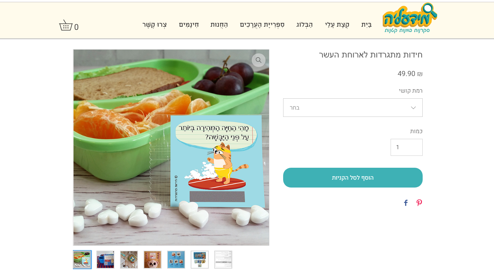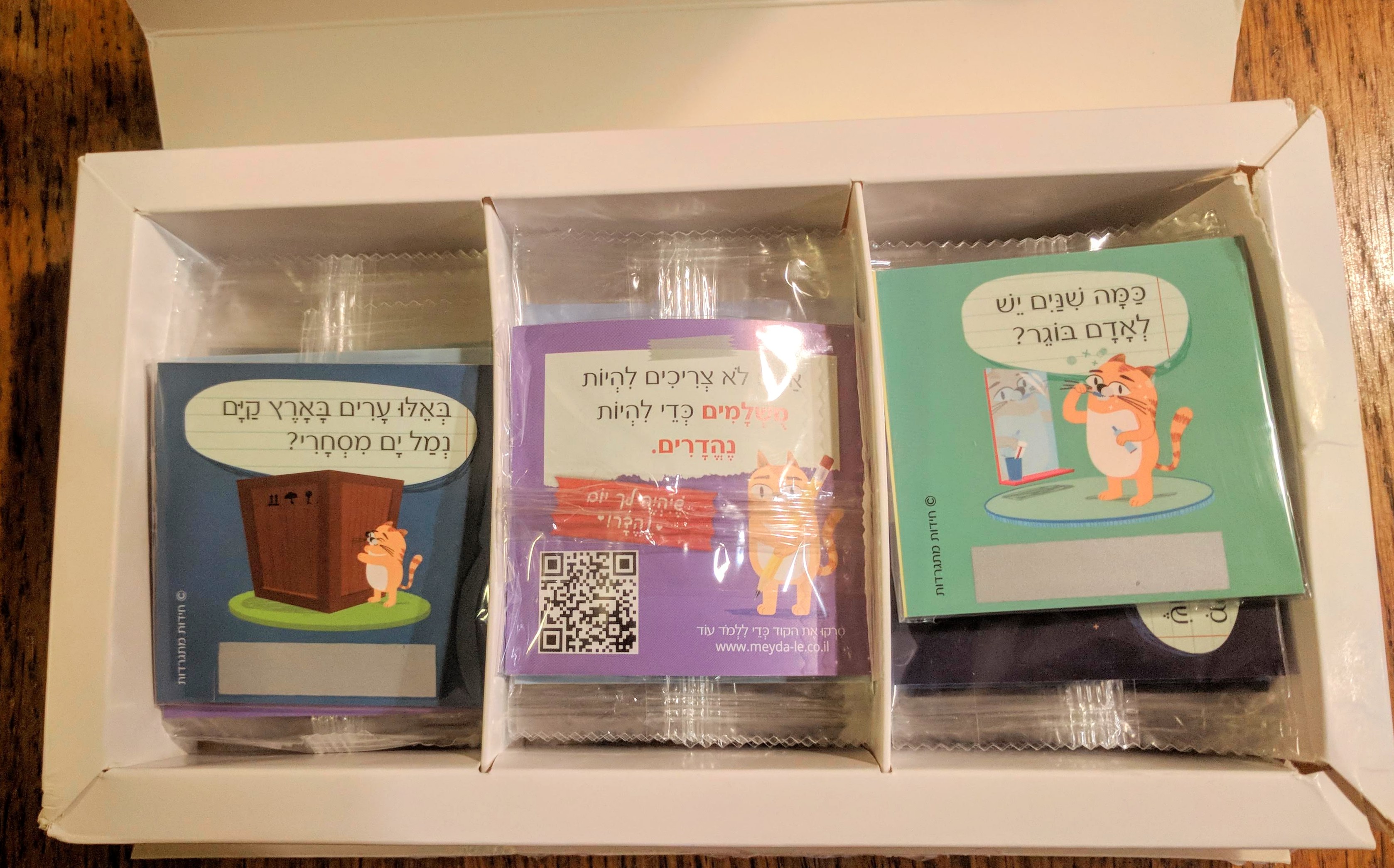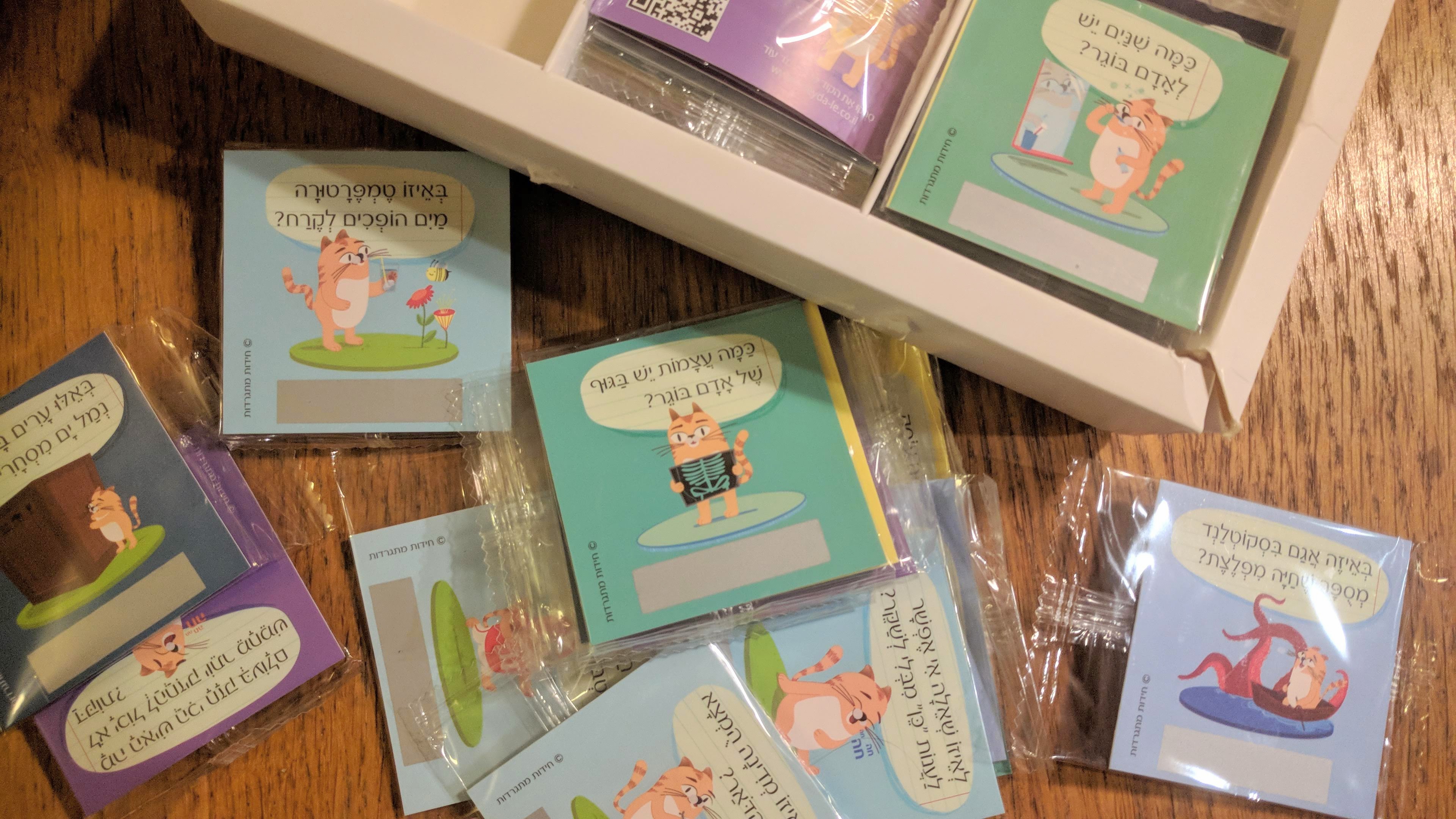 בכל קופסה יש 50 כרטיסי חידה. ההמלצה של הדס היא להניח כרטיס כזה בקופסת האוכל של הילדים ולפתיע אותם כל יום עם חידה חדשה.