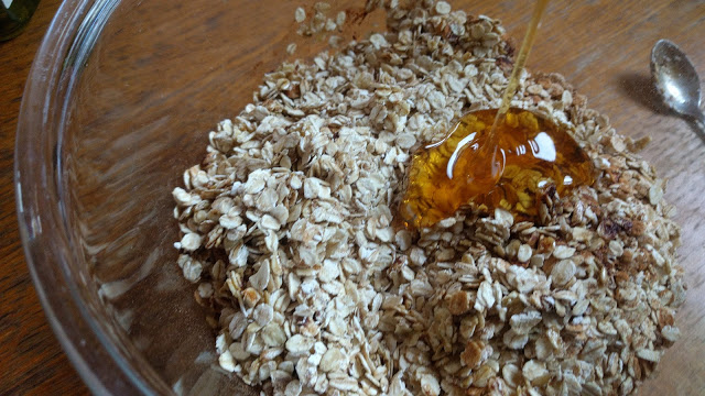 מוסיפים את ההחמאה והדבש המעורבבים לשבולת השועל – לאט לאט, שלא יהיה מצב שרטוב מידי, ואז זה לא יהיה קריספי.
