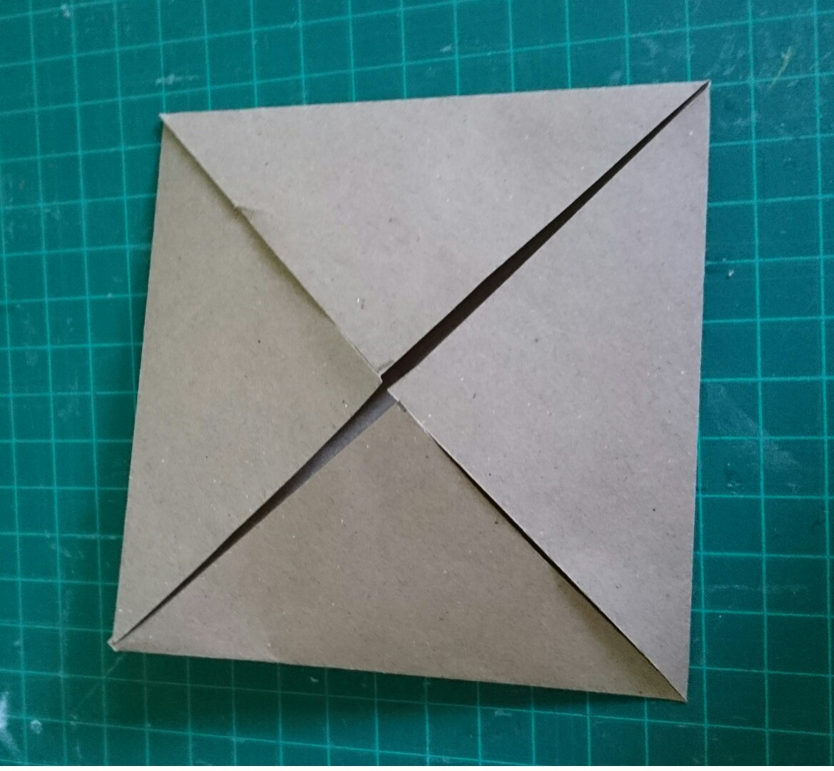 נייר חום, קראפט, 15*15 ס"מ מקפלים ל – 4 ופותחים – הדרכה מצולמת לקופסת אוריגמי