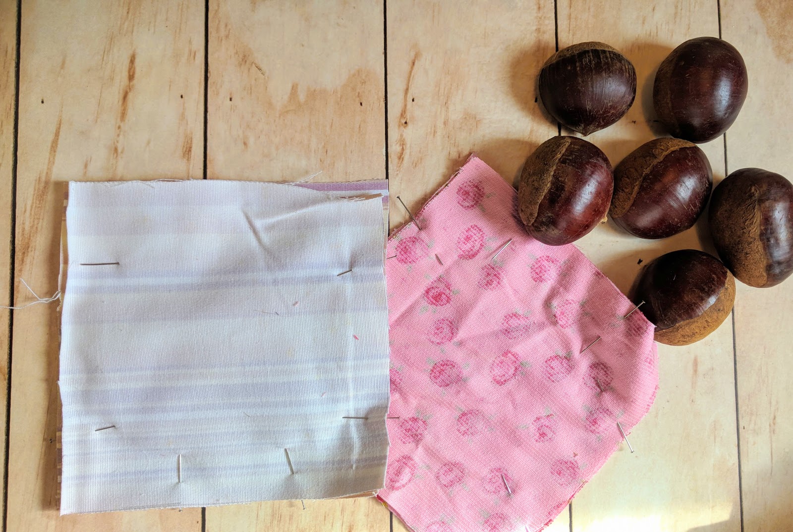 מחברים את חתיכות הבד, בעזרת סיכות, כדי של יזוזו, צד יפה לצד יפה.