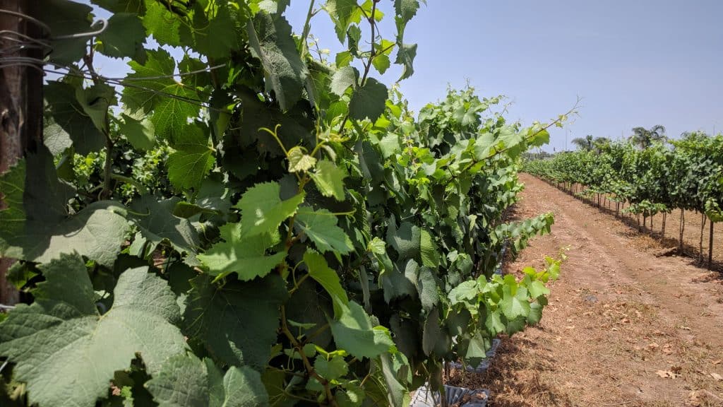 בכניסה לכרם פוגש אותנו מומו שמילוביץ ומוביל אותנו בינות לשיחי הענבים, שעליהם כבר יש שפע של פירות שממש תכף יהפכו ליין של שנה הבאה.